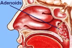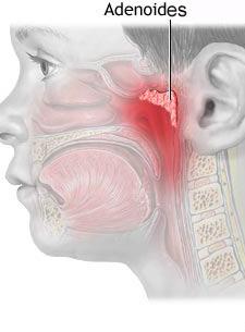 adénoïdes qui obstruent alors la trompe d'Eustache, provoquant l'accumulation de fluides et de bactéries dans l'oreille moyenne.